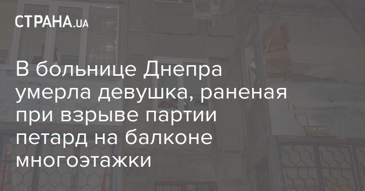 В больнице Днепра умерла девушка, раненая при взрыве партии петард на балконе многоэтажки