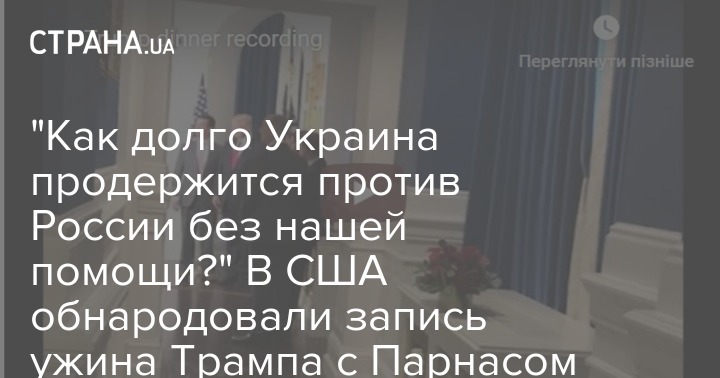 Так, во время ужина большое внимание было уделено Украине. Запись длится 83 минуты, но кто именно ее сделал, не уточняется. По данным агентства, в ходе встречи американский президент поинтересовался, как долго Украина сможет противостоять российской агрессии без военной помощи со стороны США.