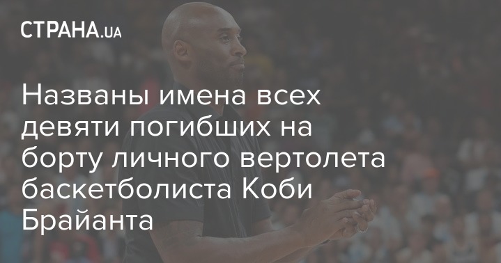 Стали известны имена всех девятерых погибших при крушении личного вертолета легенды мирового баскетбола Коби Брайанта, пишет издание Heavy.