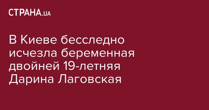 В Киеве, во вторник, 26 июля, пропала беременная двойней 19-летняя Дарина Лаговская, которая специально приехала в столицу за неделю до предполагаемых родов. Об этом на своей странице в социальной сети Facebook сообщила Эмма Шиманович. В первые полчаса после публикации сообщения о пропаже беременной девушки, сообщение набрало более 200 репостов.