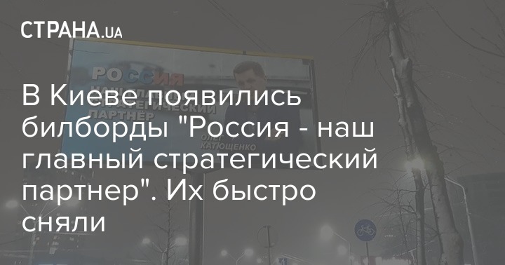 В Киеве появились билборды "Россия - наш главный стратегический партнер". Их быстро сняли