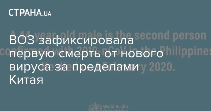 Отделение Всемирной организации здравоохранения в Филиппинах сообщило о смерти 44-летнего мужчины, который заразился новым китайским коронавирусом 2019-nCoV. Это первая смерть от него за пределами Китая.