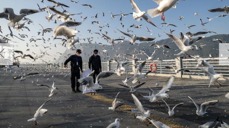 После принятых мер карантина многие парки в Китае были закрыты, но чаек в городе Куньмин все равно подкармливают, фото: news.cn