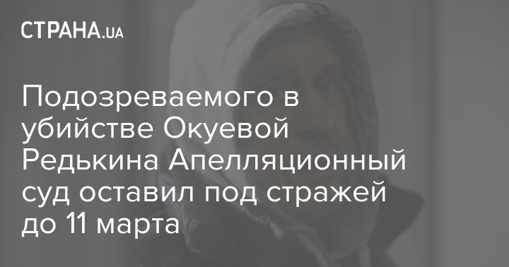 Киевский апелляционный суд оставил без удовлетворения апелляционные жалобы защиты Игоря Редькина, которого подозревают в убийстве служившей в рядах батальона полиции "Киев-2" участницы АТО Амины Окуевой, и оставил его по стражей до 11 марта. Об этом сообщается на портале "Судебная власть" Украины"