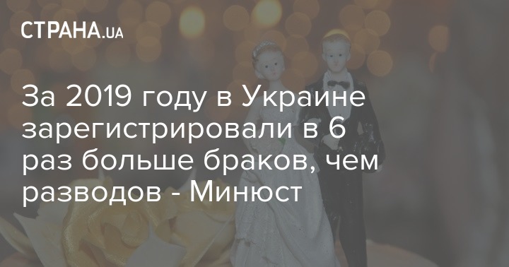 Всего за прошлый 2019 год в Украине зарегистрировали 237,858 браков и 38,572 разводов.