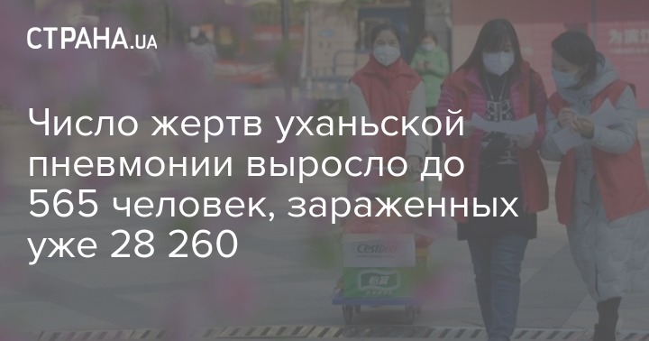 По состоянию на 6 февраля (00:00 по местному времени, 18:00 по Киеву, среда 5 февраля - Ред.) общее число заболевших пневмонией, вызываемой новым типом коронавируса, составило уже 28 260 человек, от болезни умерло 565 человек.