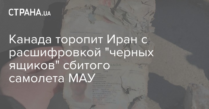 Канада заявила, что уже прошло четыре недели после авиакатастрофы самолета компании Международные авиалинии Украины" (МАУ) в Иране и необходима более быстрая расшифровка "черных ящиков". Также Канада хотела бы присоединиться к расшифровке "черных ящиков".