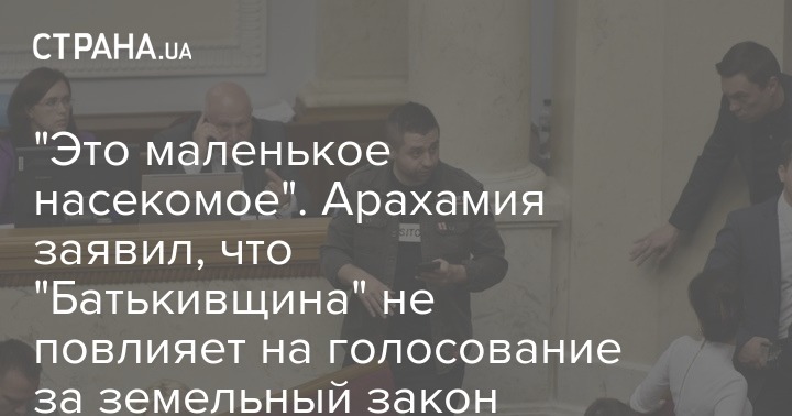 Председатель фракции "Слуги народа" Давид Арахамия заявил, что "Батькивщина" не повлияет на процесс голосования за проект закона о снятии моратория на продажу земли, поскольку это просто "маленькое насекомое, которое много жужжит".