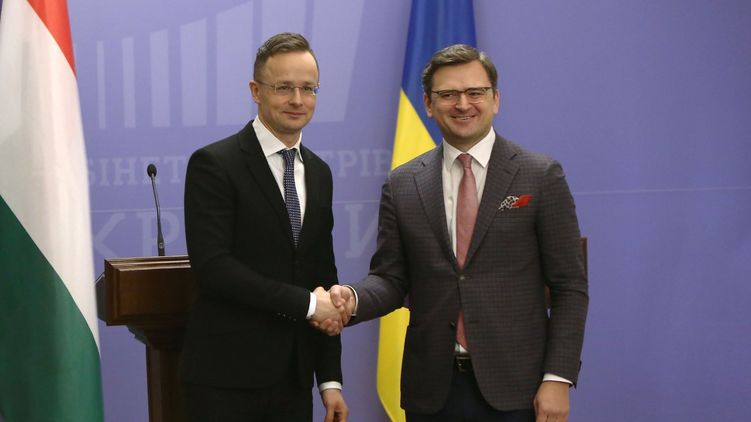 Министр иностранных дел Венгрии Петер Сийярто и вице-премьер Дмитрий Кулеба (слева направо). Фото: twitter.com/DmytroKuleba