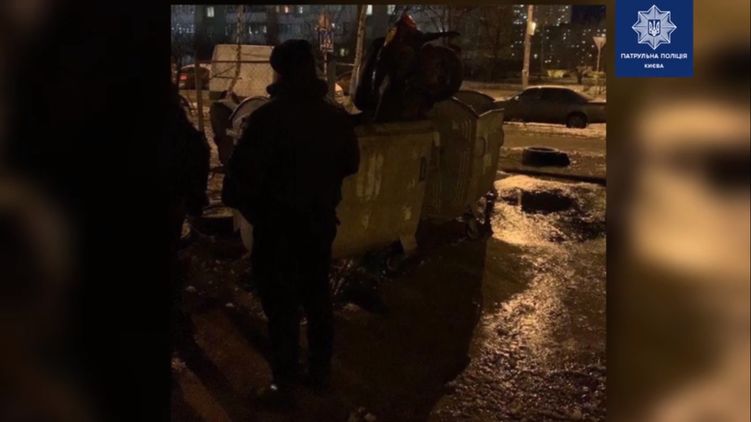 В Киеве хулиганы выбросили мопед курьера в мусорный контейнер после перепалки. Видео