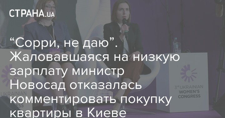 “Сорри, не даю”. Жаловавшаяся на низкую зарплату министр Новосад отказалась комментировать покупку квартиры в Киеве