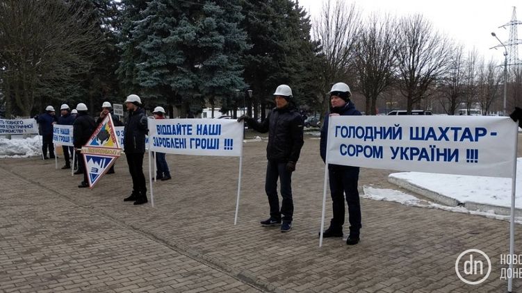 Шахтеры пикетировали здание Донецкой ОГА из-за долгов по зарплате