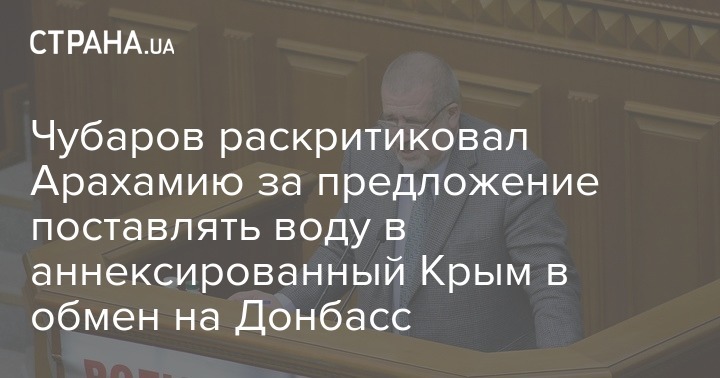 Напомним, что вчера, 11 февраля, Давид Арахамия в эфире "Прямого" высказал свою личную позицию относительно поставки воды в Крым из Украины. Лидер фракции "Слуга народа" считает допустимым организовать поставки воды на оккупированную территорию в обмен на уступки Российской Федерации по Донбассу.