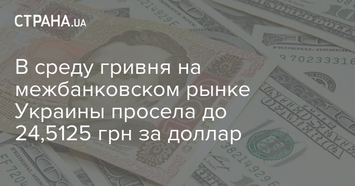 В среду гривня на межбанковском рынке Украины просела до 24,5125 грн за доллар