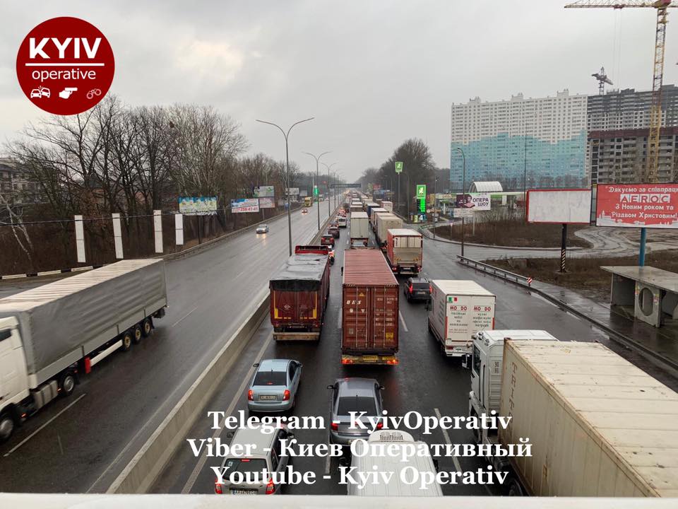 Так, в Telegram появилось видео десятков тягачей на Грушевского.