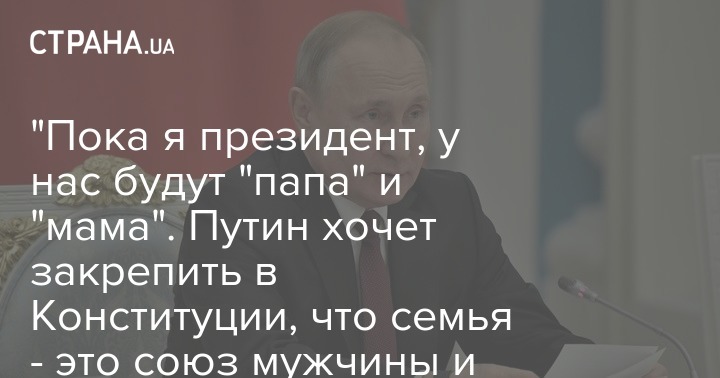"Что касается "родителя № 1", "родителя № 2"... Пока я президент, у нас не будет "родителя № 1", будут "папа" и "мама", - сказал Владимир Путин.