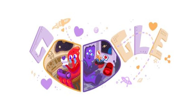 В этом году авторы дудла выбрали космическую тематику, изобразив инопланетян, открывающих подарки ко Дню всех влюбленных.