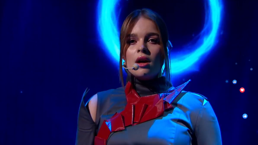 20:23 Выходит Garna - Алена Левашева - обладательница четырех октав. Она занимается музыкой с 6 лет. Была солисткой Prime Orchestra. Ее песня "Who We Are?" несет послание, что нужно быть, а не казаться