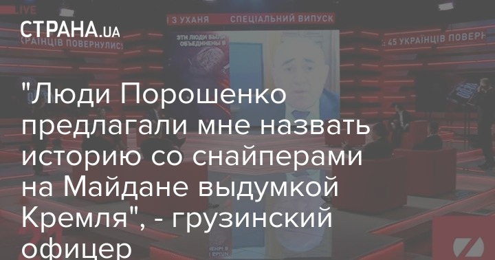 Экс-командир элитного воинского подразделения Грузии "Аваза" Тристан Цителашвили в интервью в ток-шоу "19" на телеканале ЗИК заявил, что украинские власти пытались убедить его сделать заявление, что история про грузинских снайперов, которые вели огонь по протестующим 20 февраля, это выдумка.