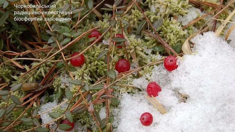 В северо-восточной части Чернобыльского заповедника сохранились бореальные (то есть таежные) леса с моховыми болотами. На ковре из мха там можно отыскать клюкву.