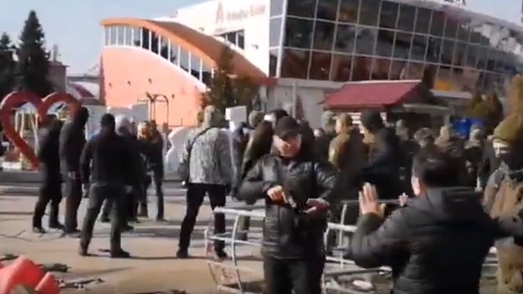 В четверг, 27 февраля, на въезде в ТРЦ "Барабашово" в Харькове произошла потасовка между предпринимателями рынка и людьми, которые одеты в форму муниципальной охраны города.
