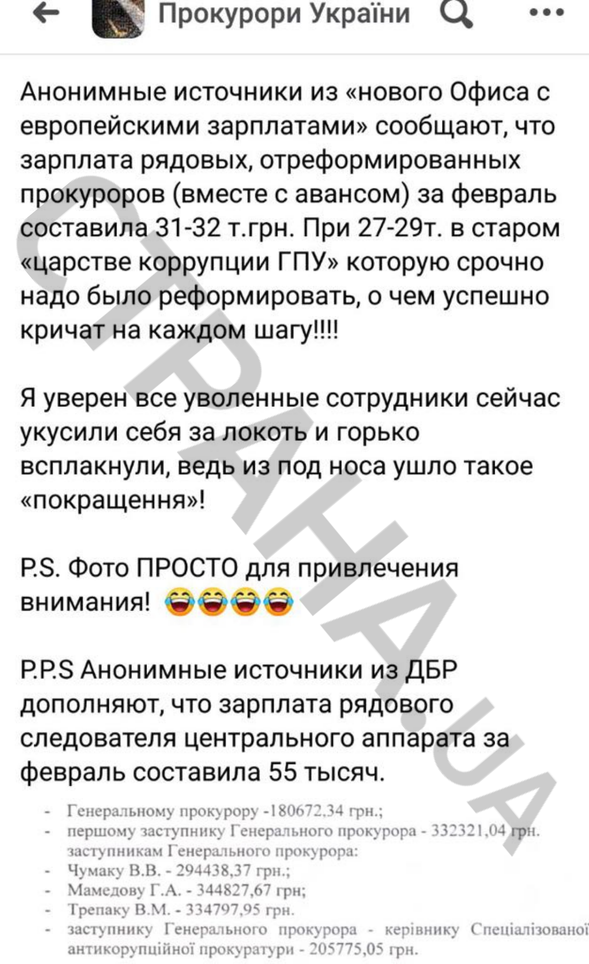 И это при том что сам Рябошапка в январе за такую же зарплату сотрудникам, прошедшим аттестацию, оправдывался что лдескать заплатили не все и в следующую зарплату долги закроют и прокурорам Офиса ГПУ доплатят.