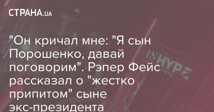"Он кричал мне: "Я сын Порошенко, давай поговорим". Рэпер Фейс рассказал о "жестко припитом" сыне экс-президента