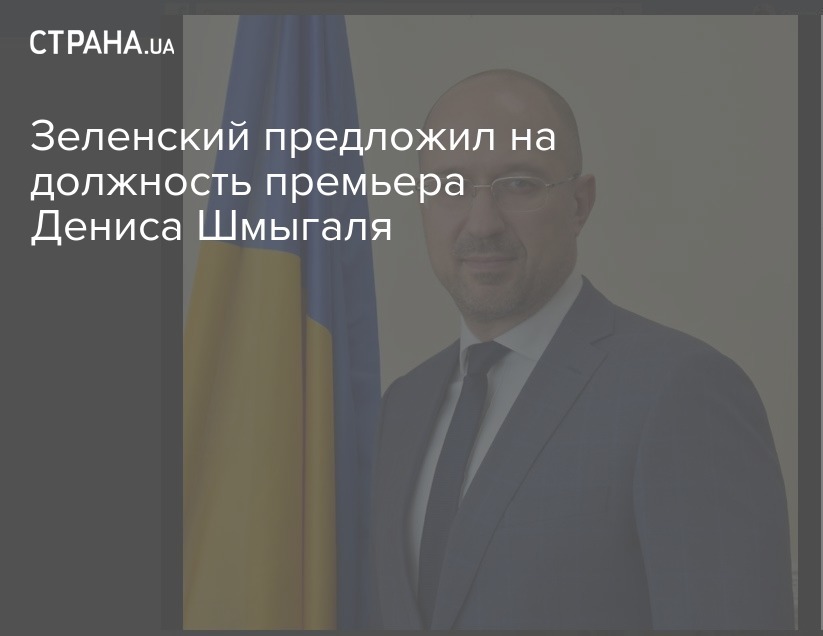 Президент Украины Владимир Зеленский на заседании фракции предложил "Слугам народа" вице-премьера Дениса Шмыгаля новым премьер-министром страны.