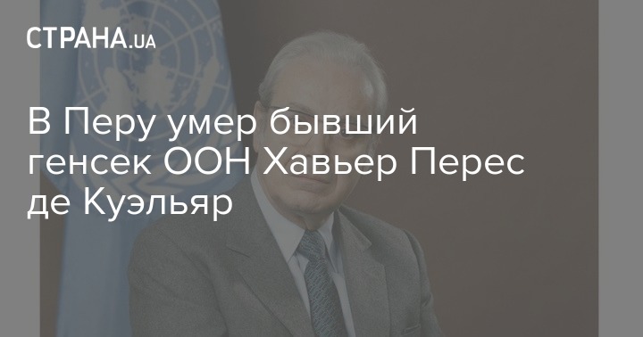 Вчера, 4 марта, в Перу скончался бывший генеральный секретарь ООН Хавьер Перес де Куэльяр. Он ушел из жизни в возрасте 100 лет.  О смерти видного дипломата сообщило агентство Andina со ссылкой на его сына Франсиско Переса де Куэльяра.
