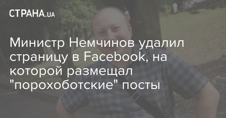 Министр Немчинов удалил страницу в Facebook, на которой размещал "порохоботские" посты