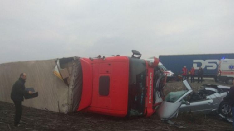 После столкновения грузовика и легкового автомобиля неподалеку от Борисполя, транспортные средства слетели с дороги. Сообщается, что в ходе ДТП погибли два пассажира и водитель малогабаритного авто.