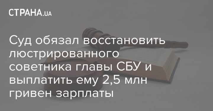 Суд обязал восстановить люстрированного советника главы СБУ и выплатить ему 2,5 млн гривен зарплаты