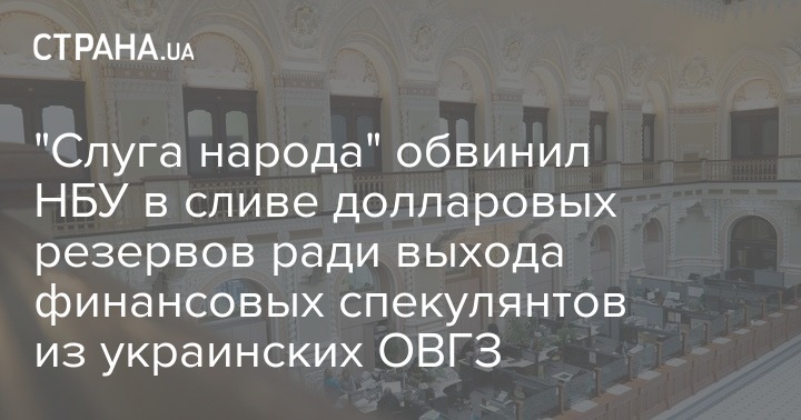 Народный депутат от "Слуги народа" Александр Дубинский обвинил руководство Национального банка Украины в лице главы НБУ Якова Смолия и его заместителей Екатерины Рожковой и Олега Чурия в совершении государственного преступления из-за начала слива резервов доллара "для сглаживания курсовых колебаний".