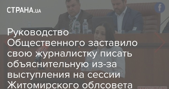 Руководство "Общественного" потребовало объяснительную у журналистки, которая пожаловалась на сокращение регионального вещания депутатам областного совета. Об этом сообщается на странице главы НСЖУ Сергея Томиленко в соцсети.