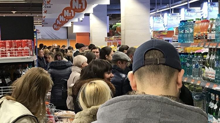 В ролике видно, как абсолютно все посетители магазина доверху набивают тележки.