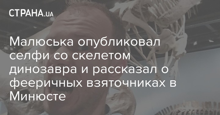 Малюська опубликовал селфи со скелетом динозавра и рассказал о фееричных взяточниках в Минюсте