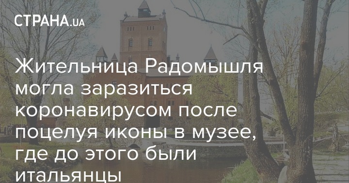 Первые симптомы коронавируса у 70-летней жительницы Радомышля Житомирской области появились 3 марта после посещения местного замка-музея "Радомысль", где она целовала иконы. Об этом пишет Depo, ссылаясь на свои источники в больнице Радомышльского района и в Житомирской ОГА.