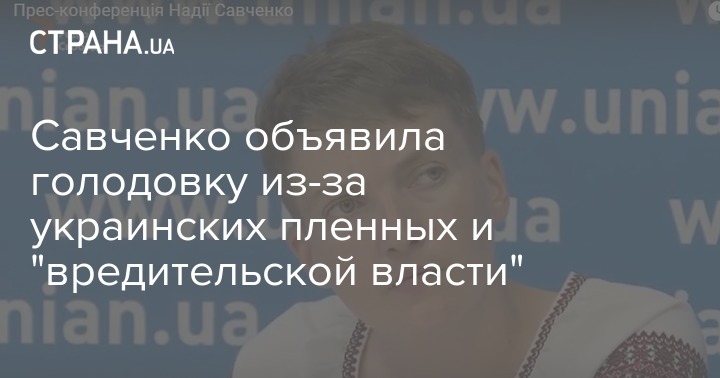 Савченко объявила голодовку из-за украинских пленных и "вредительской власти"