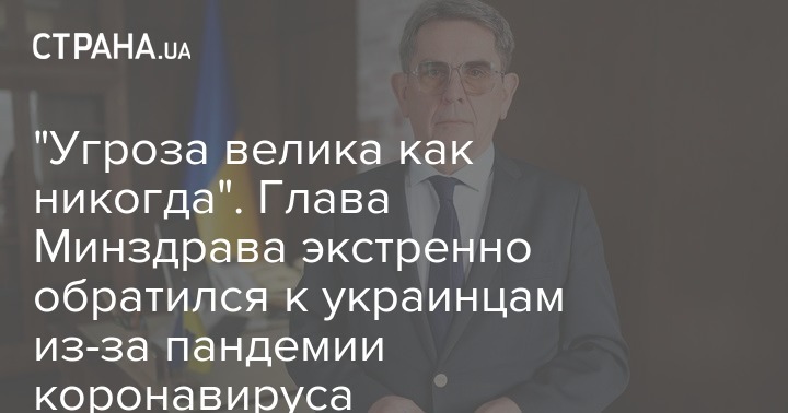 Министр здравоохранения также призвал украинцев к сознательности и рекомендовал им выполнять предписания врачей: "Это то время, когда необходимо не паниковать, а мобилизоваться, собрать все силы и помочь себе, своим близким и своим согражданам. Сейчас еще есть возможность не допустить ужасной трагедии на территории всей Украины. Успешный опыт других стран показал, что самоизоляция - самый эффективный способ предупреждения распространения болезни. Будьте сознательными, берегите себя и своих близких. За всю историю ни один враг не одолел украинский народ. Выполняя инструкции, правила и рекомендации, действуя слаженно, как единый механизм, мы гарантированно победим! Другого пути нет".