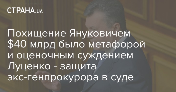 представители бывшего генпрокурора Юрия Луценко признали, что обвинение в адрес их подзащитного в похищении 40 млрд долларов не основывалось на фактах, а носило "метафорический характер и было оценочным суждением".