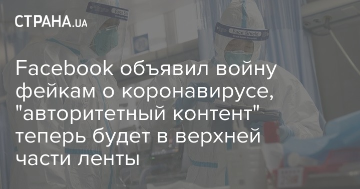 Компания Facebook заявила, что поместит "авторитетный" контент о коронавирусе в верхнюю часть новостных лент, чтобы удовлетвортть потребности пользователей в объективной информации на фоне растущего использования соцсети и остановить поток дезинформации на своей платформе и в сервисе обмена сообщениями WhatsApp.