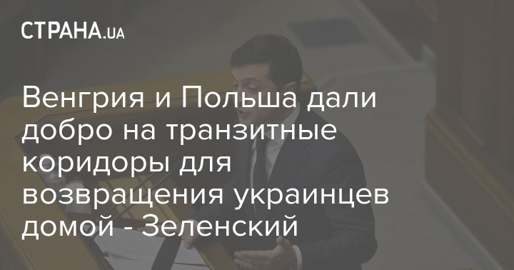 "С Венгрией и Польшей мы договорились о транзитных коридорах, по которым наши люди смогут вернуться домой", - заявил Зеленский. Также, по его словам, Киев взаимодействует с польской железной дорогой. "И сегодня из Перемышля отправятся пять поездов, которые доставят в Украину около трех тысяч граждан. А на завтра запланирован поезд, который вернет украинцев из Литвы и Латвии", - сказал Владимир Зеленский.