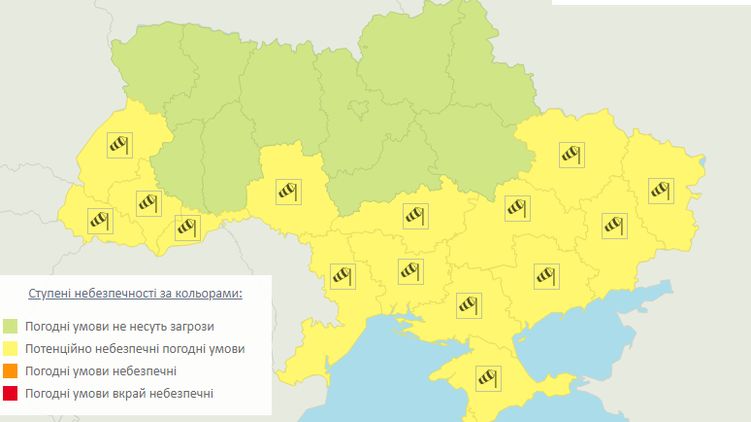В Украине объявили "желтый" уровень опасности на вторник