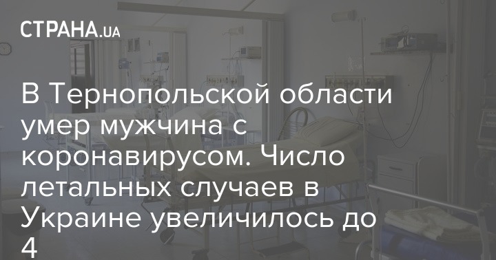 В среду, 25 марта, в Тернопольской области умер 68-летний мужчина, зараженный Covid-19. Число смертей от коронавируса в Украине достигло 4.