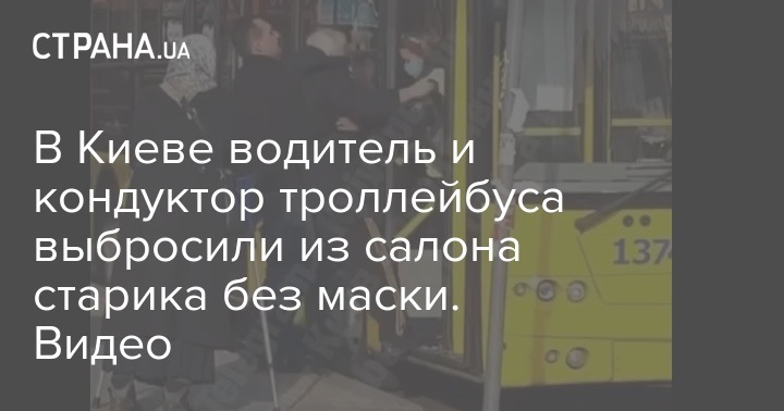В Киеве водитель и кондуктор троллейбуса выбросили из салона старика без маски. Видео