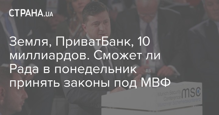 Из слов и Зеленского, и Разумкова выходило, что на заседании в понедельник попытаются принять в окончательном чтении помимо прочего и два закона, которые требует МВФ, – по продаже земли и по банкам (так называемый "антиколомойский" закон – о запрете возвращения ПриватБанка прежним владельцам).