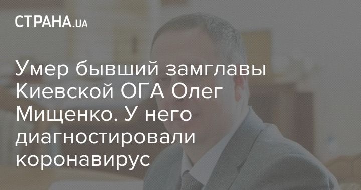 Сегодня умер член Совета директоров Конфедерации строителей Украины, экс-заместитель председателя Киевской ОГА Олег Мищенко. Ранее у него был обнаружен коронавирус.