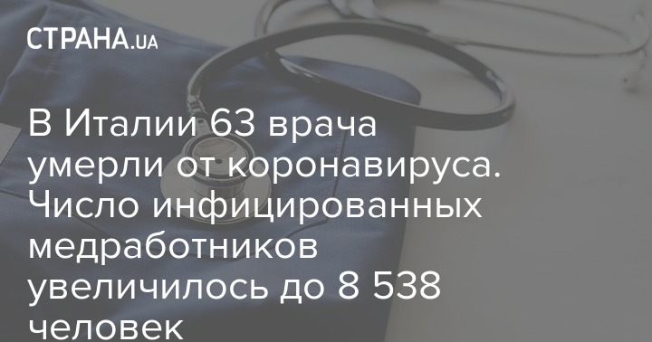 В Италии 63 врача умерли от коронавируса. Число инфицированных медработников увеличилось до 8 538 человек