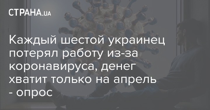 Украинцы несут экономические убытки из-за коронавируса. 69% опрошенных отметили, что их семьи так или иначе пострадали от эпидемии, а каждый шестой украинец - потерял работу или источник дохода. В сложившейся ситуации почти половина респондентов сообщила, что денежного запаса им хватит только на март, четверть протянут еще апрель.