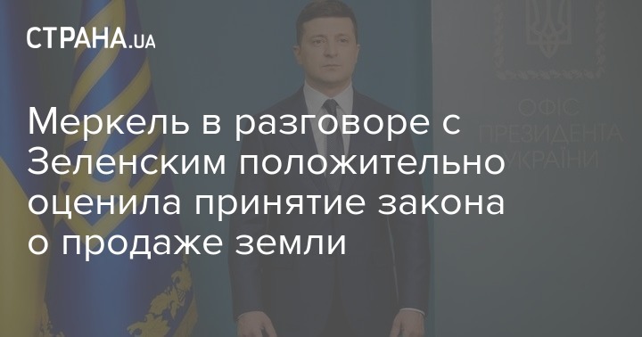 Канцлер ФРГ Ангела Меркель положительно оценила принятие Верховной Радой Украины  законов об обороте земель сельскохозяйственного назначения и о регулировании банковской деятельности. Об этом она заявила во время телефонного разговора с президентом Украины Владимиром Зеленским, сообщается на странице Офиса президента в соцсети.